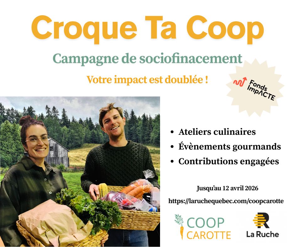 Engagée pour une alimentation locale, durable et solidaire, la Coop Carotte est un marché de proximité qui rend accessible les produits d’une communauté d’agriculteurs et de transformateurs alimentaires Bas-Laurentien et québecois. Via une plateforme de commande en ligne simple et un point de cueillette au centre-ville de Rivière-du-Loup, c’est du bon, du frais et de la qualité, toute l’année. Visionnez notre clip !