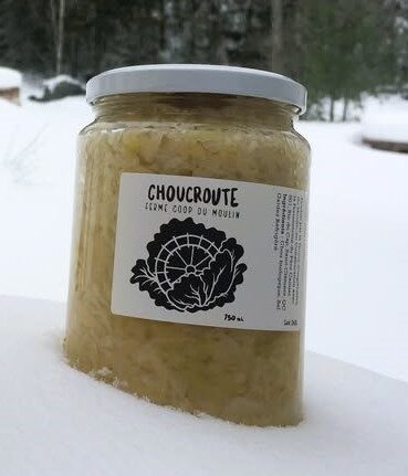 Choucroute faite avec nos choux (Certifiés biologiques par Ecocert Canada), recette élaborée en collaboration avec la Fermenterie du Père Canuel! 750ml de pur plaisir!